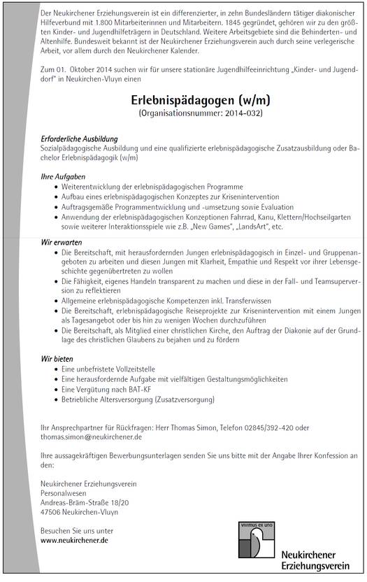 26.08.14 - Stellenausschreibung für Erlebnispädagogen
