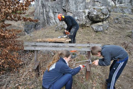 Wer sagt's denn… Die Jugend von heute! Vincent repariert mit Team vom Kap-Institut kaputte Bank oberhalb der Schönhofener Kletterfelsenweiter ...