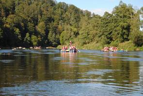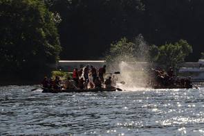 Anschließend wird zusammen das Floß zu Wasser gelassen und los geht’s: in Teams von 8-15 Personen sind Sie gemeinsam auf einem Floß und paddeln Ihrem Ziel entgegen. Bis zu mehreren Kilometern bewegen Sie sich auf dem Fluss, bewältigen Stromschnellen und Felsbrocken, meistern scharfe Kurven und landen schließlich sicher wieder am Ziel an...