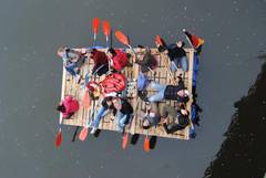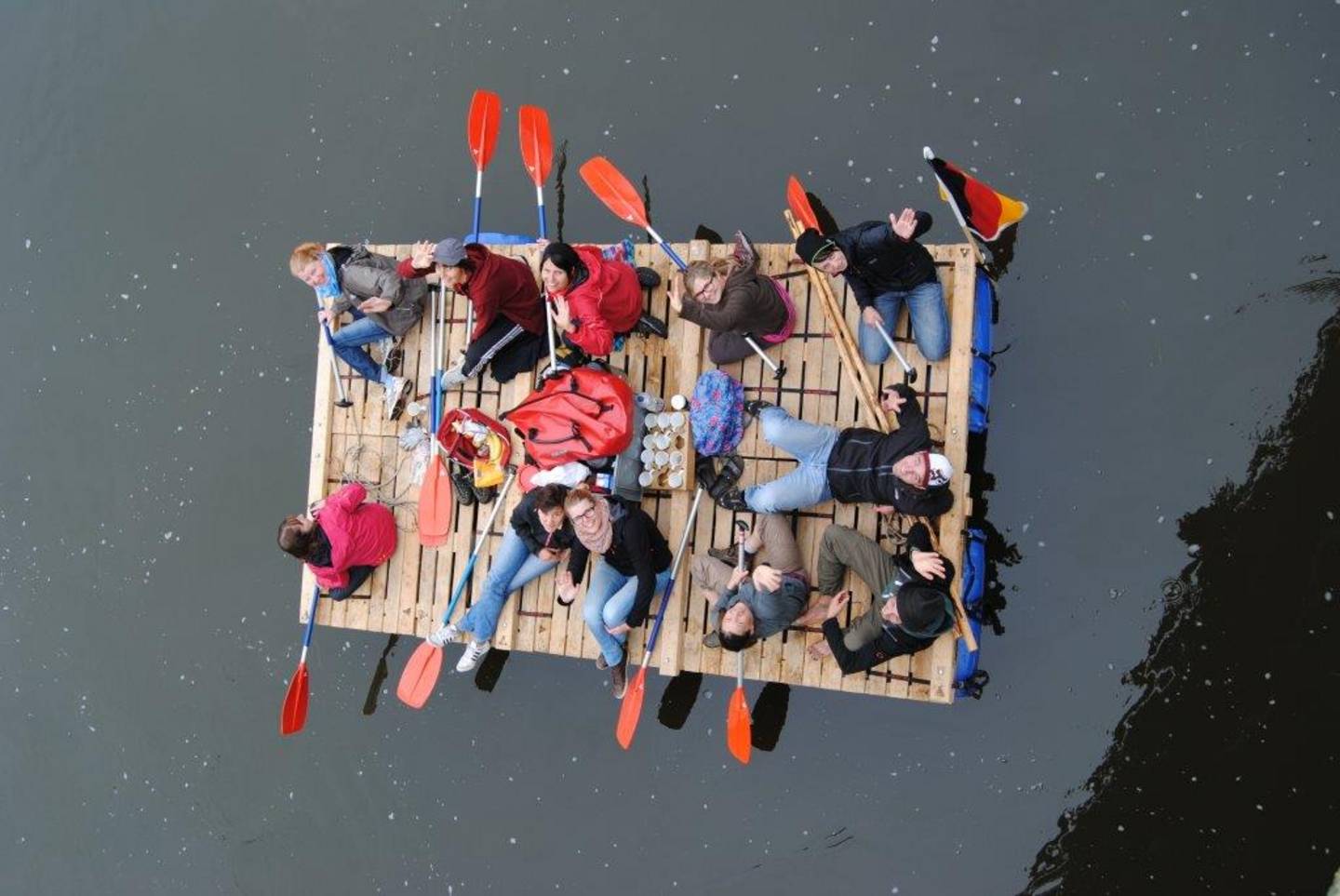 „Das hier ist nicht Club Robinson“, entgegnet Peter Alberter, als er ungläubigen Blicken begegnet. „Schlafen auf dem selbst gebauten Floß oder im Zelt?“, „Wer hat etwas zu Essen dabei?“, „Wie organisieren Sie die beiden Tage?“, „Wer kocht?“ – spätestens nach diesen Fragen ist klar: Für ihre Verpflegung muss die Gruppe selbst sorgen und ob das Abenteuer Floßbau am Fluss gelingt, hängt allein von den jungen Leuten ab.