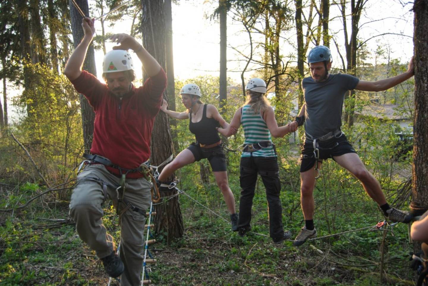 - Die Gruppe -> Spaß und Austausch, Gefahrenquellen im Umgang mit Seil-/Elementen (Vroni)