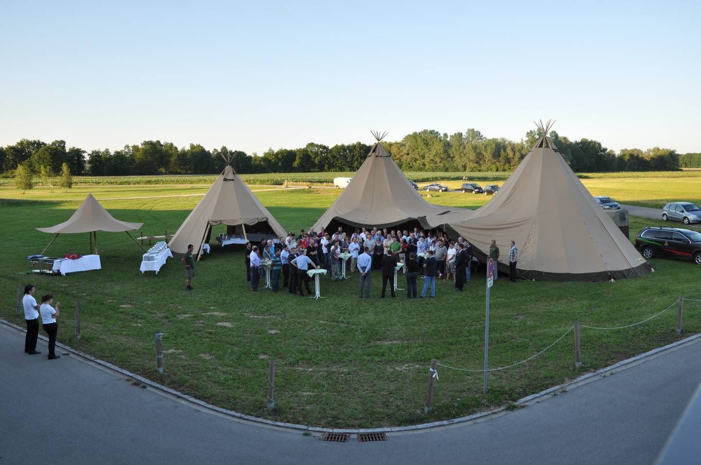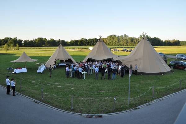 Sehr gut eignen sich die gigantischen Tipis für Abendveranstaltungen. Ein gemütliches Beisammensitzen nach einem erfolgreichen Teamtraining, ein stilvolles gemeinsames Abendessen im Schein der Petroleumlampen ist ebenso möglich wie die Einrichtung eines Übernachtungsplatzes im Tipi: mit Schlafsäcken und Isomatten bietet das Tipi genug Schlafraum für das gesamte Team.