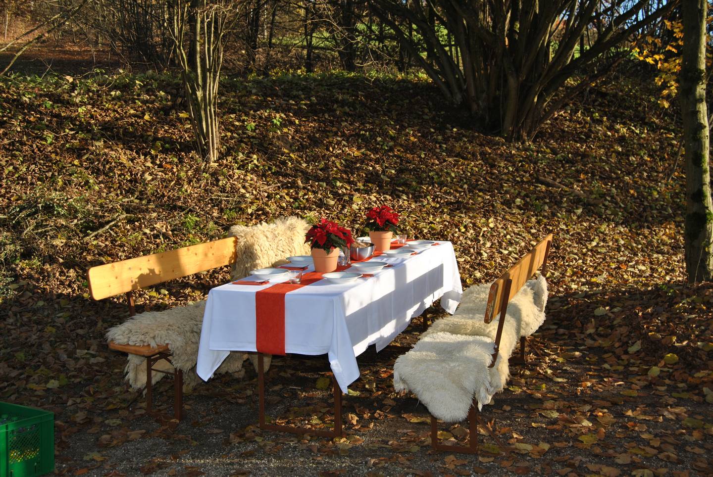 Abgerundet wurde das Training mit gemeinsame Kochen und Essen unter freiem Himmel - begleitet von unserem Pizzaofen, Holz aus dem eigenen Wald, hausgemachter Tomatensuppe und Flammkuchen... Hm, lecker :-)