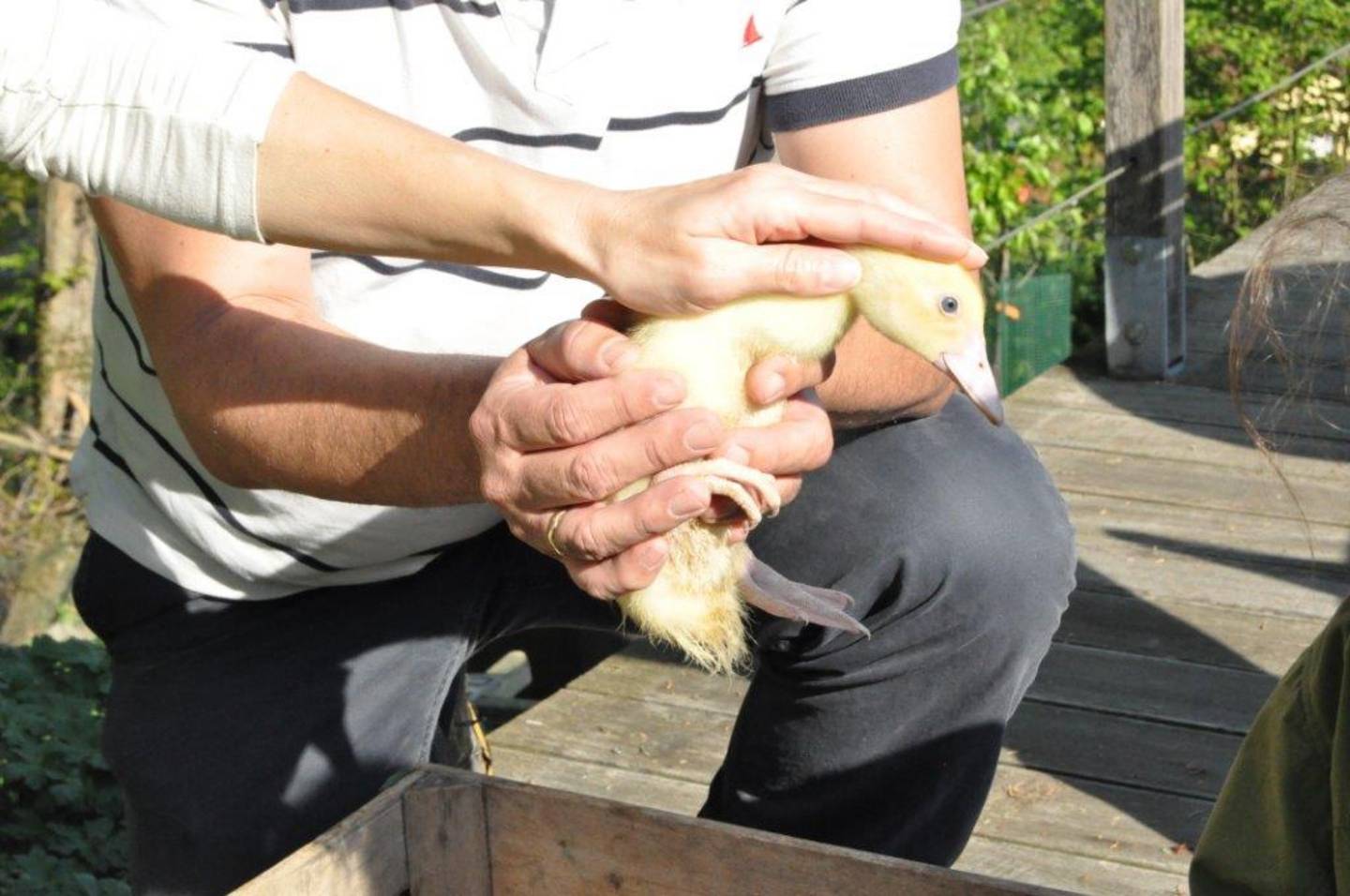 Gerade mal zwei Wochen sind sie alt, die 8 kleinen Erpel. Heute morgen wurden sie von unserem Gesamtleiter Peter Alberter abgeholt und gleich in den hergerichteten Stall gebracht. Ab morgen dürfen sie auch ins Freie. Ein Gehege von ca. 20m² erwartet sie, incl. Wasserbad :-) Fotos folgen natürlich...