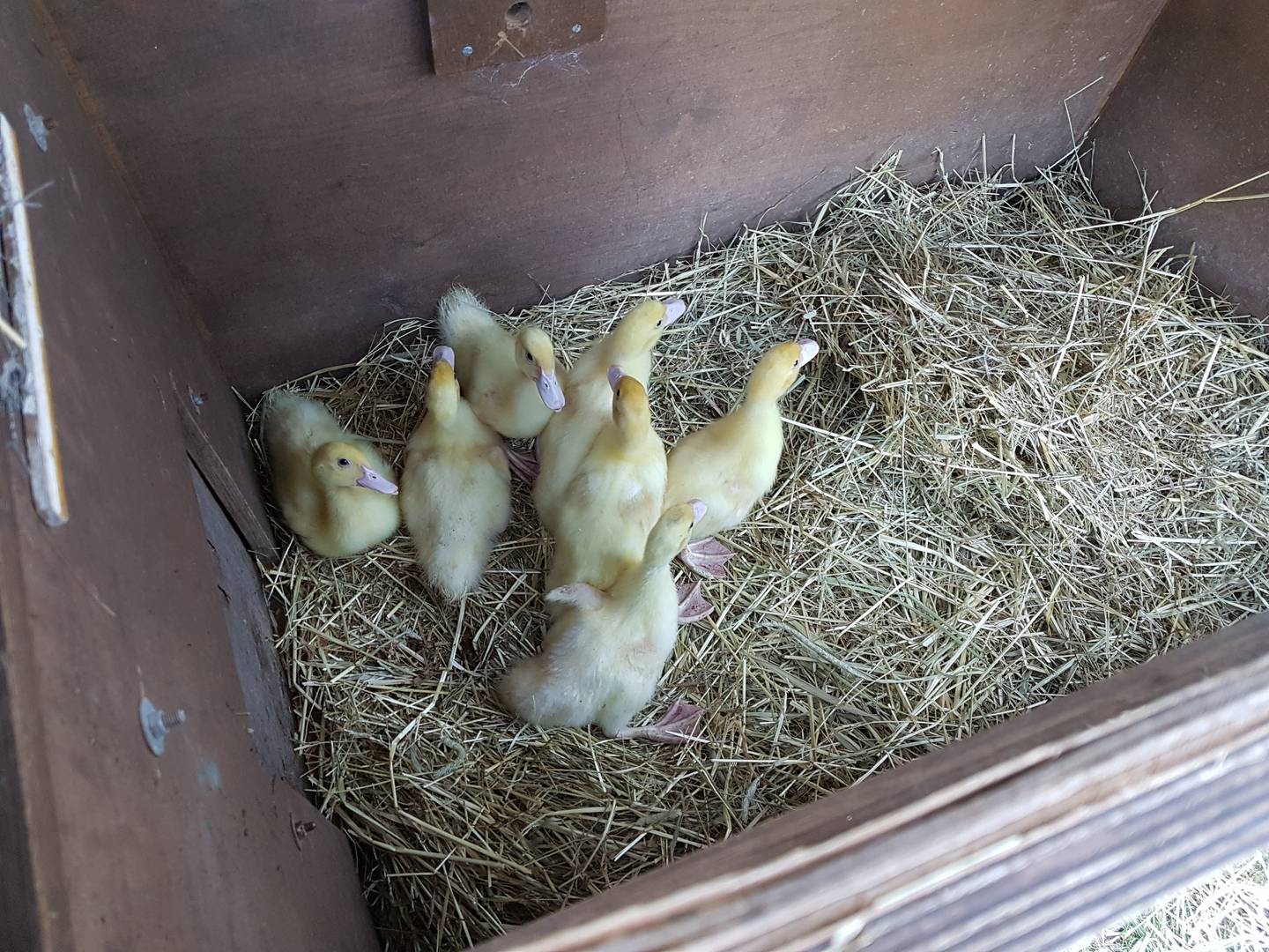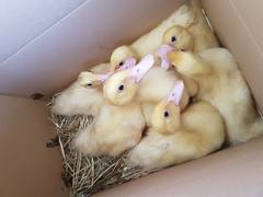 Seit gestern haben wir wieder junge Enten bei uns im Garten. Die 3 Wochen alten Kleinen sind gestern per "Karton" zu uns gereist und durften sofort in ihren Stall. Mit überraschend wenig Aufruhr hat das gut geklappt, morgen dürfen sie dann zum ersten Mal nach draußen...