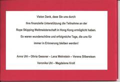 Sechs Mädels von der Rope-Skipping Abteilung des TSV Wacker Neutraubling flogen gemeinsam nach Hongkong, um sich in verschiedensten Disziplinen mit anderen Teams aus aller Welt zu messen.