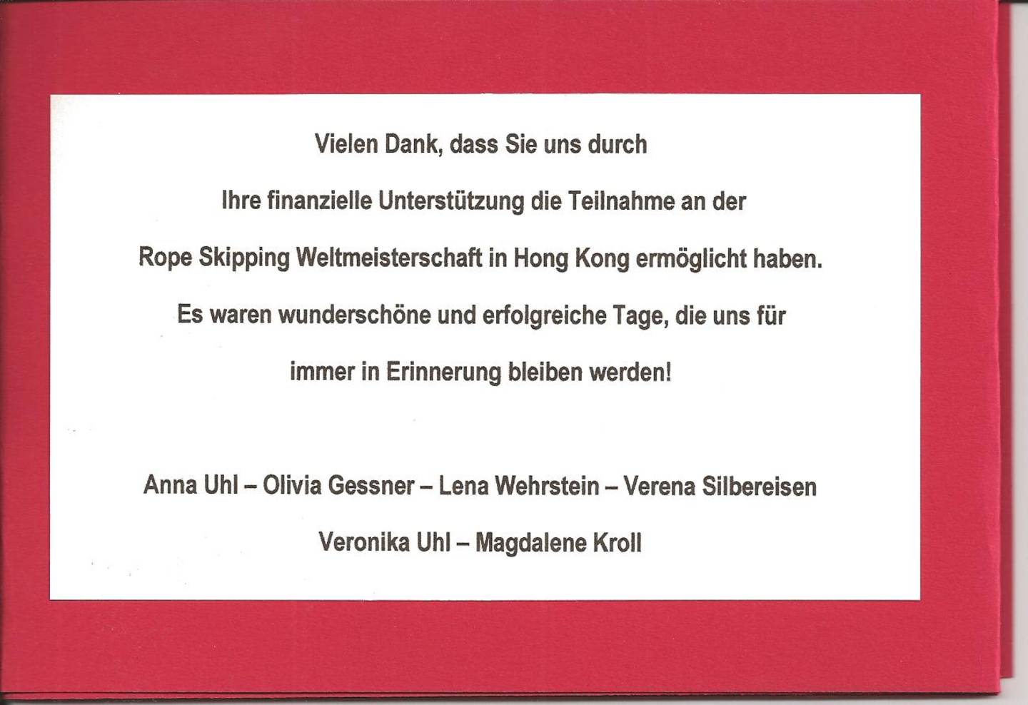 Das Rope-Skipping Team "Jumping Joeys" qualifizierte sich für die FISAC-IRSF World Championship 2014 in Hongkong.