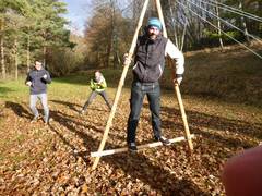 Zudem durfte jeder Teilnehmer noch ein eigenständiges Praxisprojekt anleiten, das aus seinem Abschlussprojekt stammte und ca. 30 Minuten Dauer aufweisen sollte. Auch hier war es für die Gruppe spannend zu sehen, welche Abwandlungen von Teamaufgaben möglich sind, Unterschiede in der Gruppenleitung beobachten, usw.