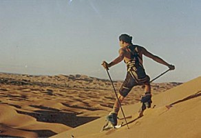 Nach dieser zweiwöchigen Vorbereitungsphase flogen wir Anfang Januar nach Agadir / Marokko. Von dort fuhren wir mit den schwer bepackten Mountainbikes Richtung Süden und erreichten in Fam El Hisn den 29sten Breitengrad, unseren südlichsten Punkt. Wir überquerten mit Hilfe diverser Pässe die drei Atlasgebirge (Antiatlas, Mittlerer Atlas und Hoher Atlas) und durchquerten die Nordwestsahara in östlicher Richtung bis Merzouga, das 25 km vor der östlichen Grenze zu Algerien liegt. Zum Frühlingsanfang und nach 2279 km hart erstrampelten Kilometern verließen wir Marokko und radelten über das europäische Festland zurück zu unserer Heimatstadt Regensburg, die wir Mitte Juni nach 5380 km erreichten. Während unserer halbjährlichen Biketour erlebten wir endlose Wüsten mit Temperaturen um die +40 °C, aber auch das Atlasgebirge mit Eis und Schnee. Wir fuhren hunderte Kilometer auf reinen Sandpisten, schoben die Räder durch knöcheltiefen, feinsten Sand. Wir bezwangen den Antiatlas, den Hohen Atlas, den Mittleren Atlas und Ausläufer der Pyrenäen. Der höchste Punkt war der Pass Col du Zad (2178 m) Bei Außentemperaturen um die -5 °C biwakierten wir im Schnee, da uns ein Schneesturm mitten im Pass überraschte und dieser innerhalb von Stunden für vier Tage gesperrt wurde. Da wir keine Hilfe erwarteten, kämpften wir uns mit "Bike und mit Sack und Pack" durch teilweise 1 m bis 1 1/2 m hohe Schneeverwehungen. Bis auf wenige Jugendherbergen und einfache Hotels übernachteten wir überwiegend im Freien und versorgten uns mittels Campingkocher eigenständig. In Marokko arbeiteten wir als Handlanger auf einem traditionellen marokkanischen Lehmbau mit.